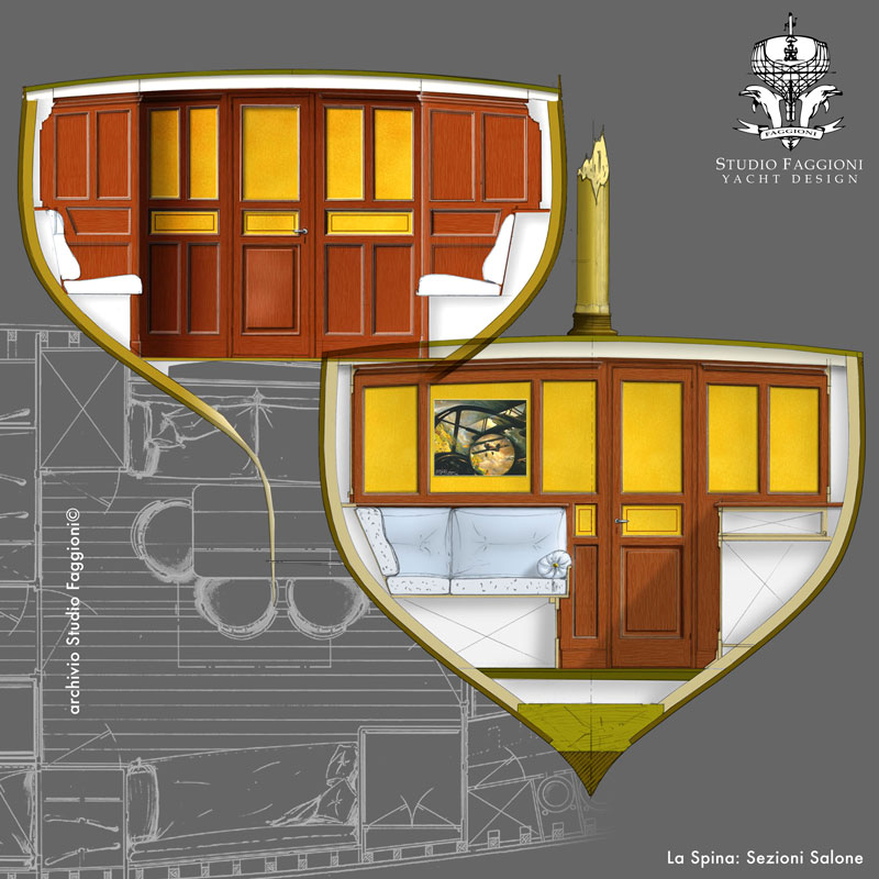In effetti, di vero e proprio progetto si tratta anzi, di progetto, di ricerca e analisi storica che in questo caso non possono essere divisi. In molti purtroppo, molto superficialmente credono che il progetto di restauro sia una semplice riedizione dei progetti originali, o ripristino passivo di tutto ciò che di originale si trova a bordo.