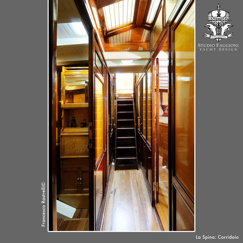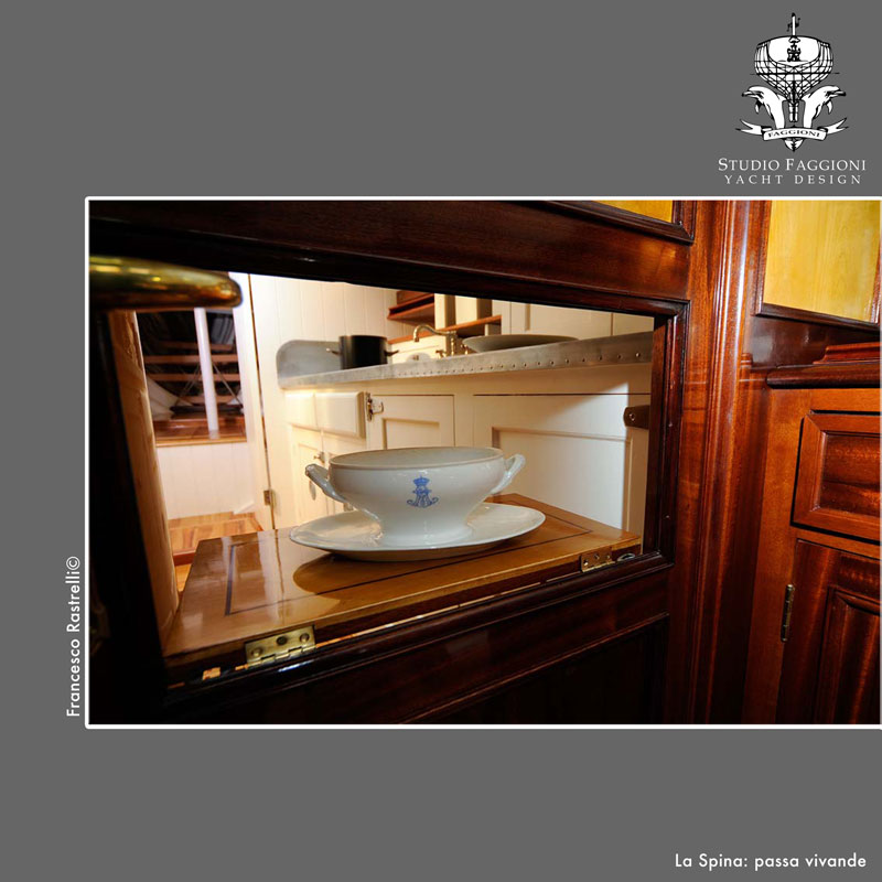Come impostare un restauro tanto delicato? Innanzitutto occorre andare alla ricerca di uno spirito guida, quello proprio della barca, che fisserà le regole di tutti gli interventi da eseguire a bordo, in modo che abbia caratteristiche tipiche di questa imbarcazione, una sorta di DNA percepibile da un insieme di fattori.