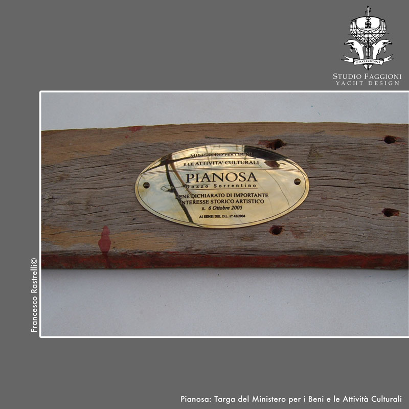 Nel 2003 Pianosa ? stata dichiarata dal Ministero dei Beni Culturali, imbarcazione storico e parte del patrimonio storico artistico italiano.