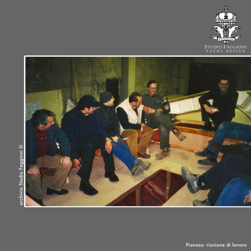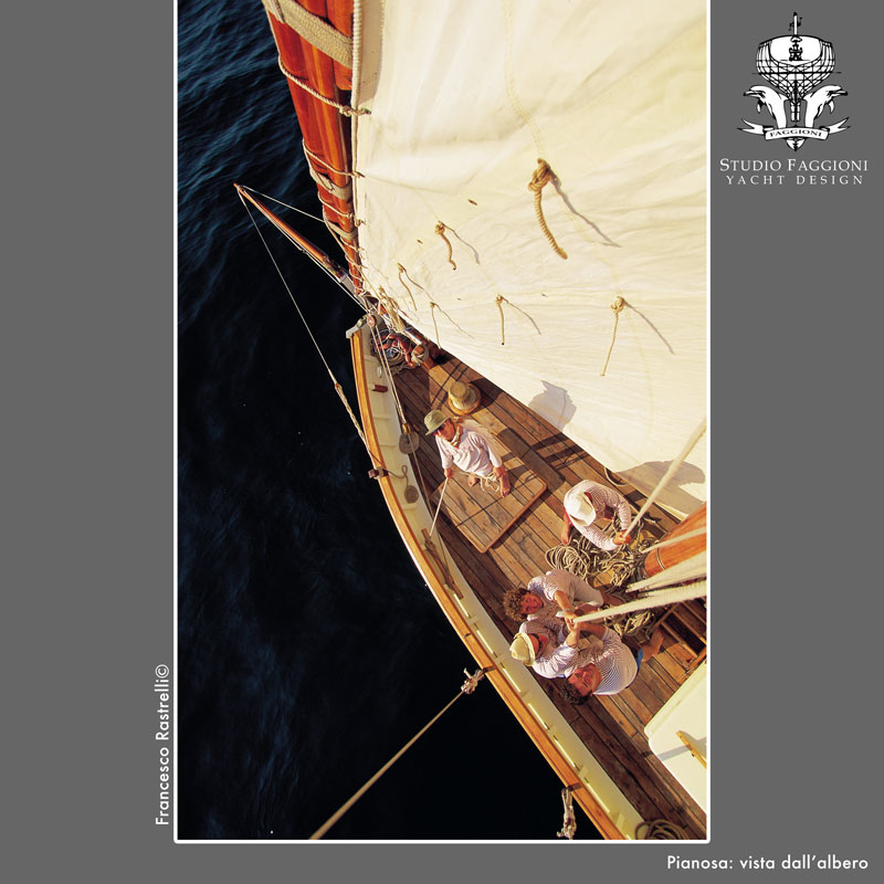 Questo progetto, forse un po' anomalo, ? stato eseguito per met? sulla carta (piano velico, di coperta e alberatura) e per l'altra in cantiere, per met? con la matita e per met? con le parole, a stretto contatto con le maestranze, con le quali spontaneamente si ? creato un clima sereno di dialogo, di reciproci scambi di idee legate a culture diverse e ad un ormai purtroppo raro lavoro in letizia che ha portato all'ottimo risultato che ? oggi sotto gli occhi di tutti.