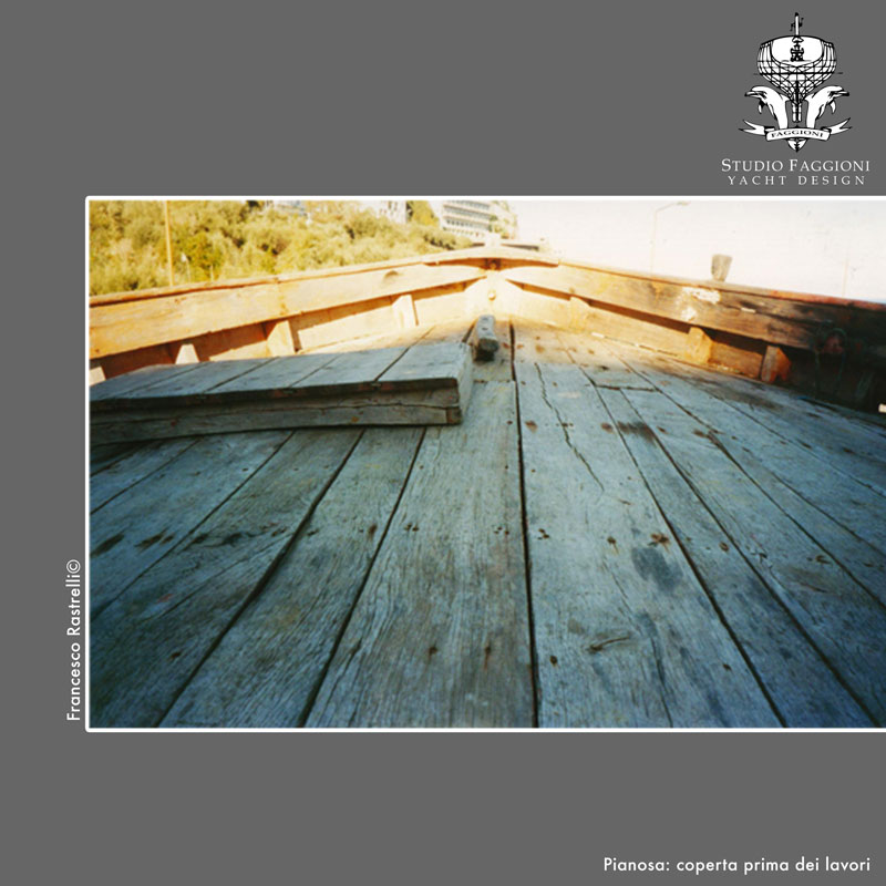 Avevo in corso i progetti di restauro per Iduna, Black Swan e Magda XIII, e la richiesta di restauro di un semplice gozzo di 12 metri mi colse piacevolmente impreparato. A renderlo interessante fu senza dubbio il grande entusiasmo dell'armatore che, cosciente di stare per intraprendere una lunga e delicata operazione, non mise termini di tempo sia per il progetto che per la realizzazione, dimostrando cos? di capire ed apprezzare tutti quegli sforzi di studio, progettazione ed esecuzione che stanno dietro ad ogni restauro.