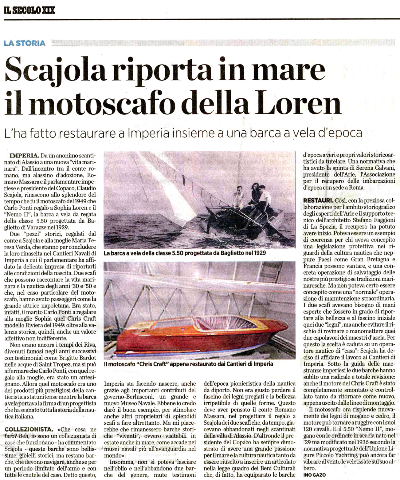 | Title: | Scajola riporta in mare il motoscafo della Loren |