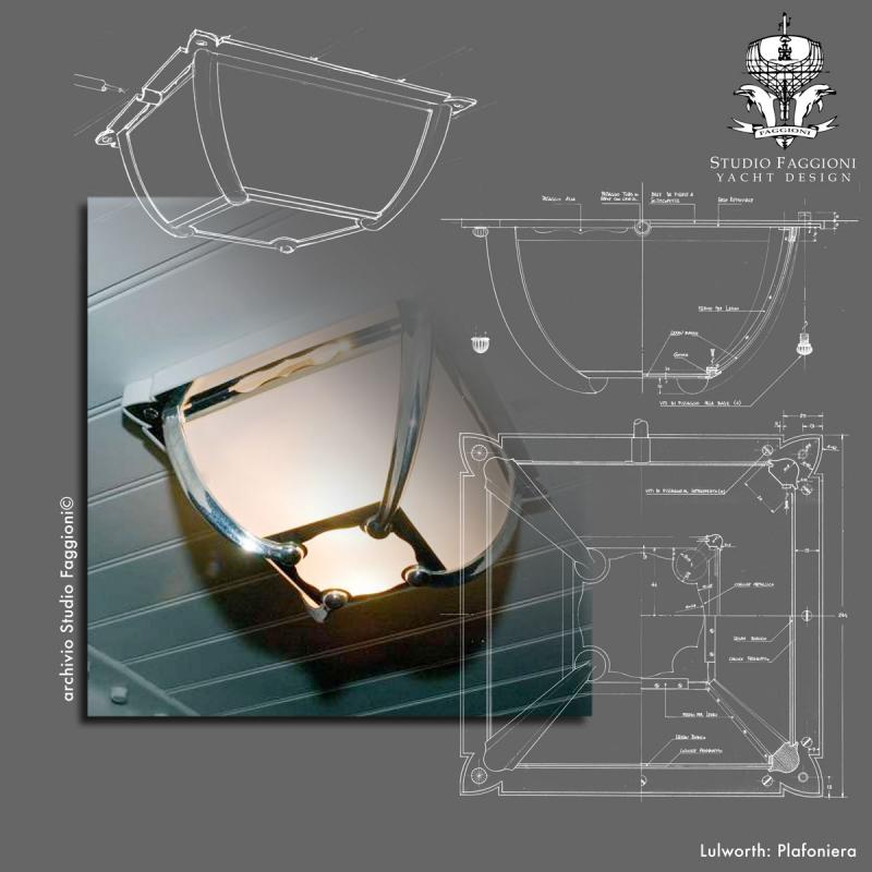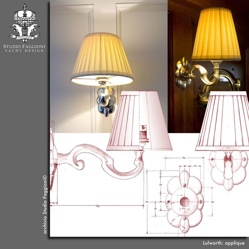 Unlike boat building from scratch, the objects need to draw inspiration from a detail that nobody will see, but that is right there: it is the boat's DNA. Once this object is deduced its nature will also be understood. In my case, the underlying theme was a sort of flower that I took as an inspiration for the base of the wall lamps and that I then used as a matrix for conceiving other details.