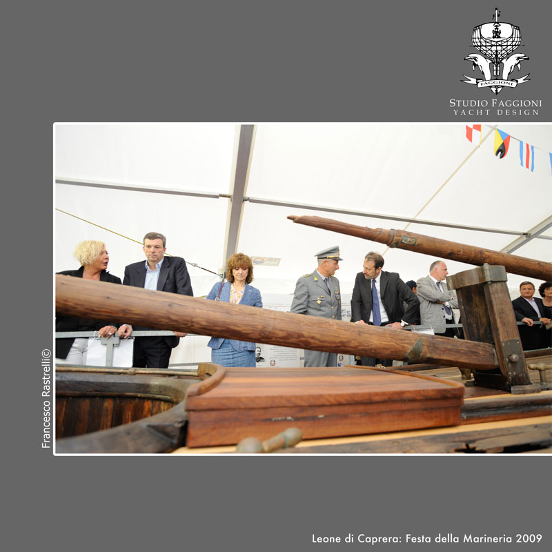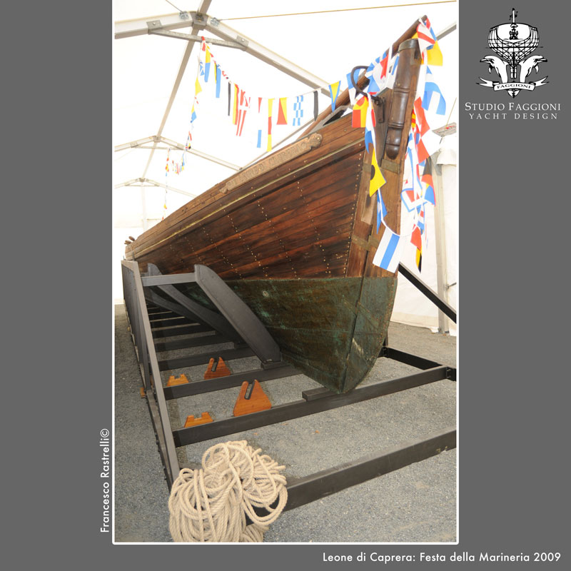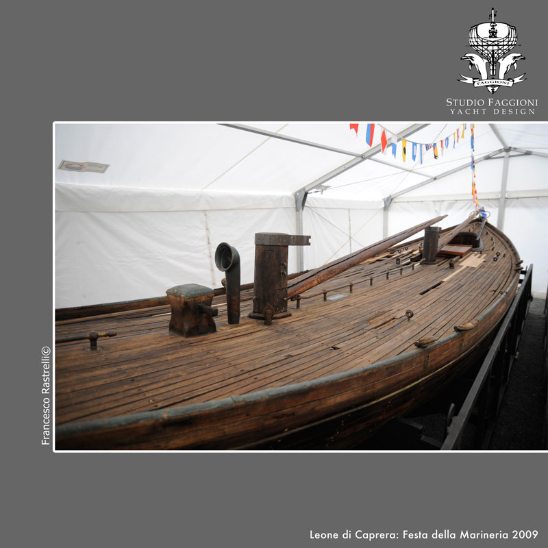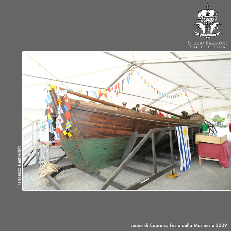 Endless red tape delayed the start of work by A.R.I.E., with the consent of the Milanese authorities and the Central Institute for Restoration in Rome. On 27th March A.R.I.E., with the help of Finance Police facilities, transported the Leone to Francesco Crabuzza's Old Fashioned Boats yard in Livorno, where work began under the supervision of Studio Faggioni Yacht Design from La Spezia. The Leone's problems weren't yet over, and A.R.I.E. completed its task only because it showed the same bloody-minded determination and enlightened folly that had driven Grassoni and Troccoli to follow captain Fondacaro. A.R.I.E. had two years to finish the museum restoration. The organisation respected the agreements and won institutional consent and recognition, taking on even more work than originally intended. This also involved considerable financial outlay. Finally, in Livorno on 9th June 2009, A.R.I.E. proudly presented the "museum launch" of the Leone di Caprera. She was joined for the occasion by the old man from Camerota. His name is Orlandino Troccoli, the great grandson of Pietro Troccoli, one of the men who completed the crossing from Uruguay to Italy in 1880.