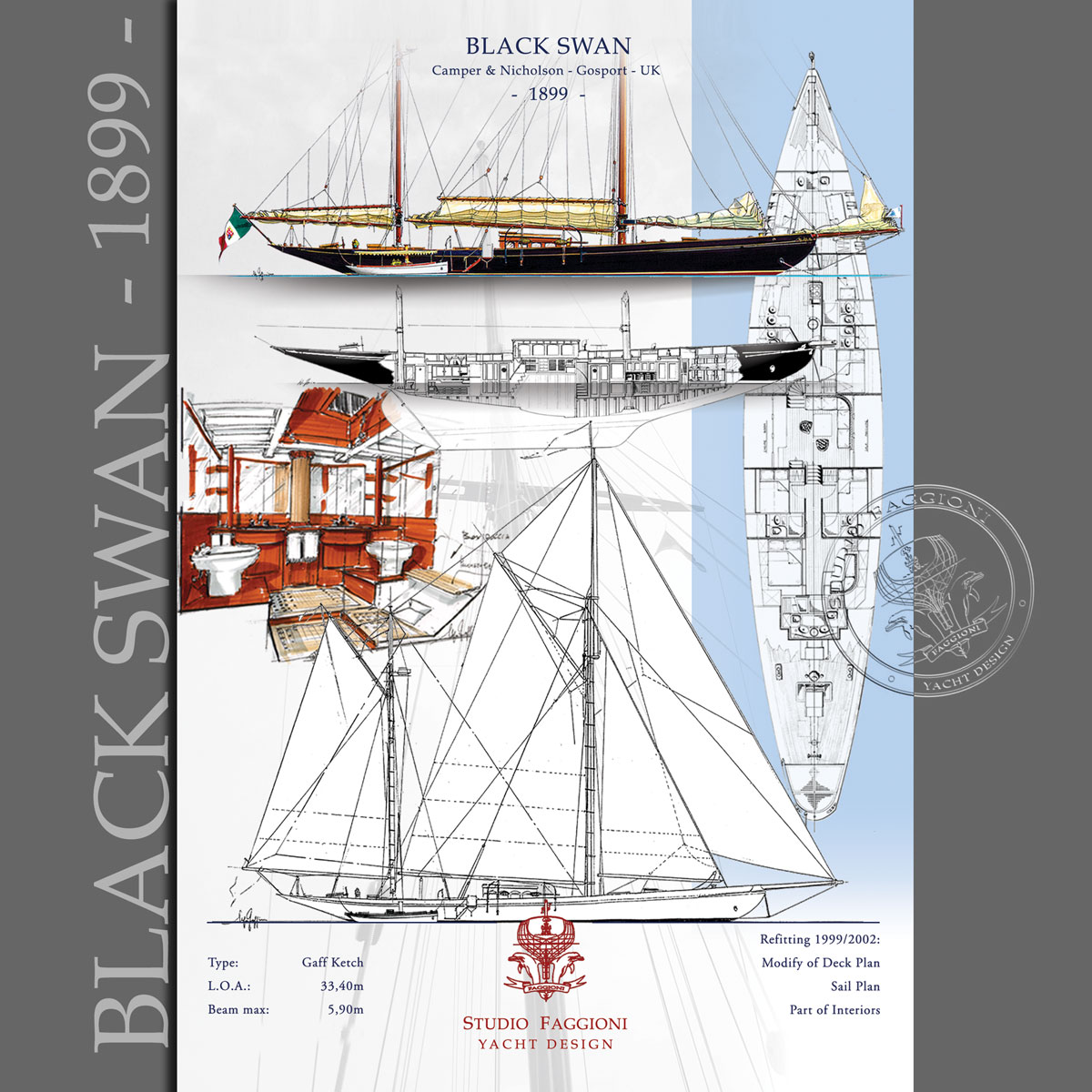 Black Swan Black Swan Shipyard: Camper & Nicholson (UK) BoatLaunch Year: 1899 Boat Type: Gaff Ketch Hull length: 33,40 m Restoration work: Piano Velico, di Coperta, Rigging e parte interni - Sail Plan, Deck Plan, Rigging Beginning Restoration work: 1999 End Restoration work: 2002 Publications Link: WORK IN PROGRESS Black Swan Black Swan Black Swan Black Swan Black Swan Black Swan Black Swan Black Swan Black Swan Black Swan Black Swan «« Back to Boats List ««