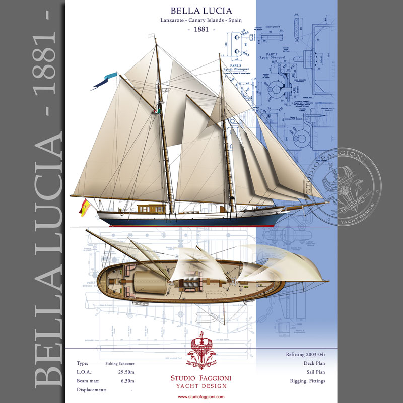 Nel 2002 un armatore Canario decide di riportarla in vita convertendo la sua originale destinazione d'uso a yacht privato e dallo Studio Garroni Designers di Genova ricevemmo l'incarico per lo sviluppo dell'armo velico a goletta aurica di tipo Canario.