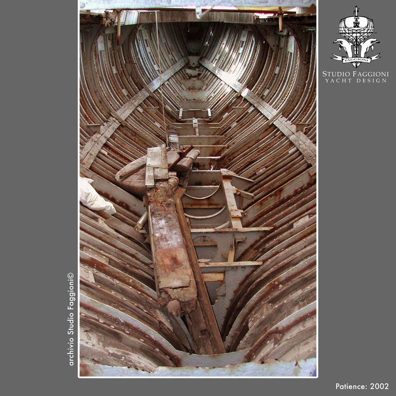 Il restauro di Patience inizia nell'autunno del 2002 con il suo trasferimento dai Cantieri Beconcini, dove versava in stato di abbandono da troppi anni, a Viareggio, dove si celebrer? la sua rinascita.