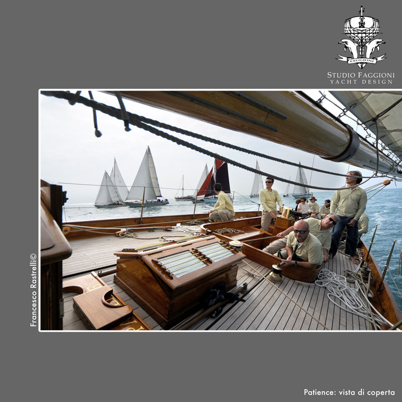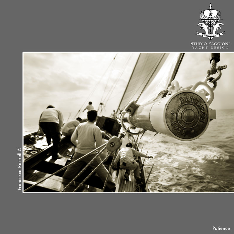 "Patience fu costruita come fast cruiser nel 1931 e dopo una soddisfacente estate di crociere e regate si iscrive al Fastnet Race dello stesso anno contro quindici Ocean racers americane ed inglesi. Guidando questa forte e veloce flotta da Cowes a Plymouth e ritorno, Patience mostr? la sua abilit? contro le difficili acque del canale inglese".