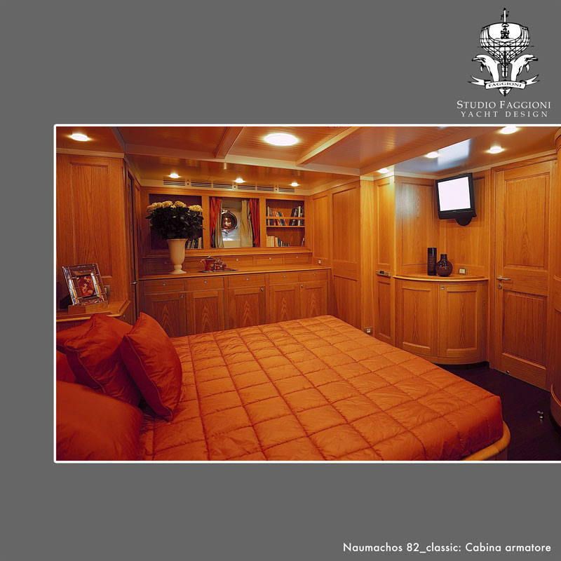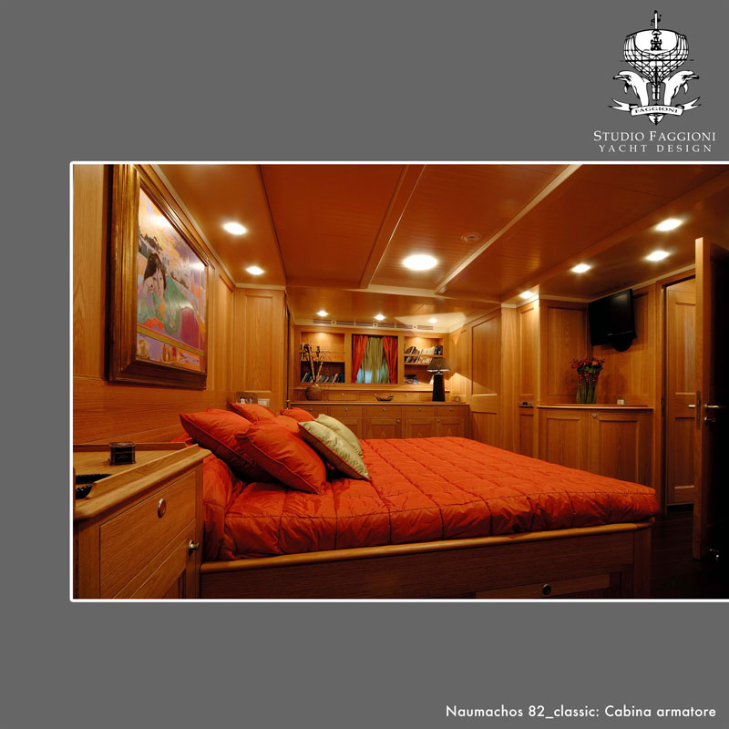 Anche il tema olfattivo costantemente presente, a partire dalla scelta del rovere che rilascia lentamente un odore percepibile anche al gusto che conquista e coinvolge in un'atmosfera senza tempo, a contrasto con una percezione pi? immediata che si ha, invece, aprendo sportelli, armadi o cassetti interamente rivestiti da un profumatissimo cedro. Un preciso intento di progetto che vuole innescare un meccanismo Proustiano in chi, armatore o ospite, torner? con la mente al ricordo del tempo trascorso a bordo.